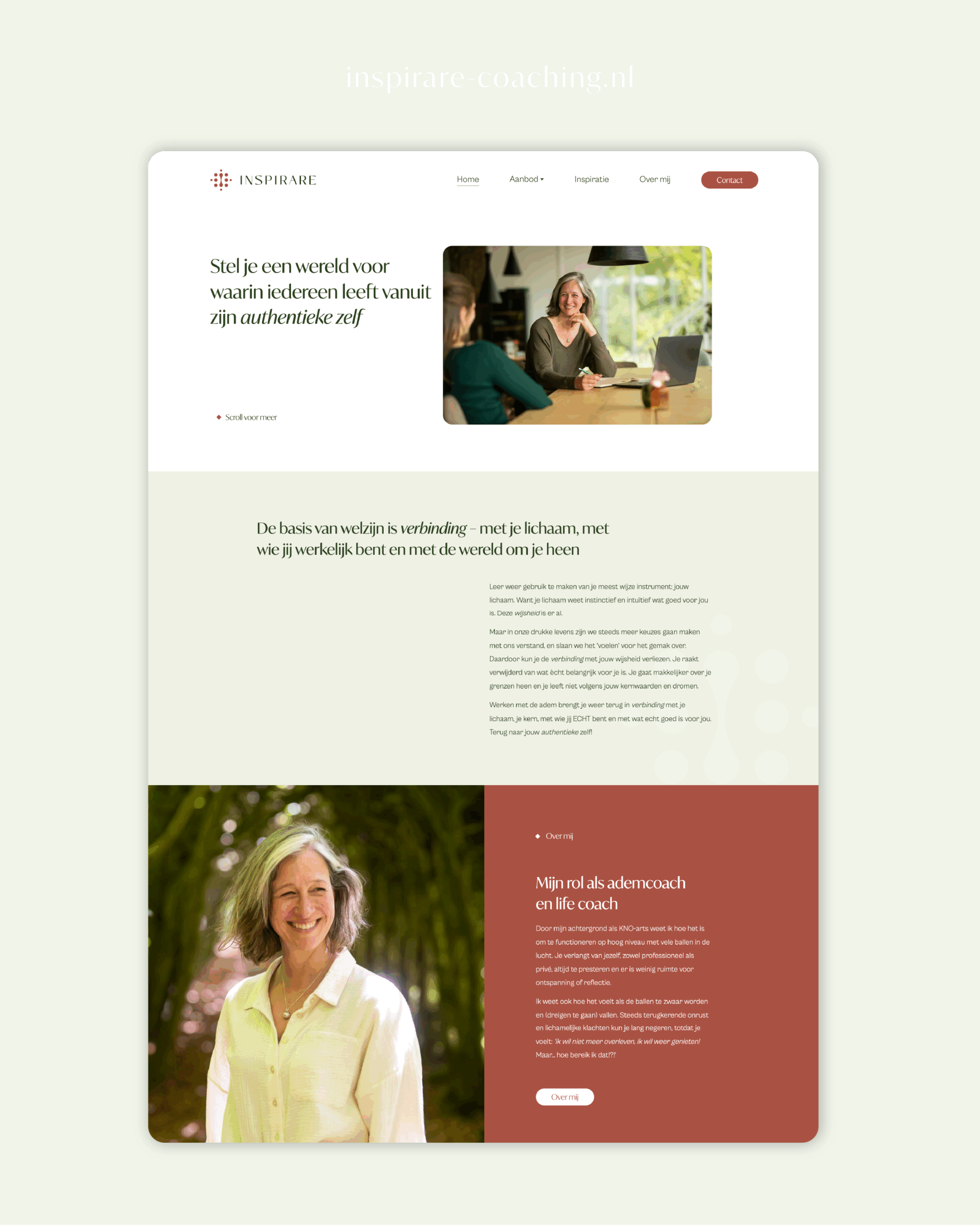 We begonnen bij de kern. Tijdens meerdere sessies namen we de tijd om te vertragen en scherp te krijgen waar Inspirare werkelijk voor staat. De missie, visie, kernwaarden en de mensen voor wie haar werk bedoeld is. Vanuit daar ontstond stap voor stap de vertaling naar beeld.